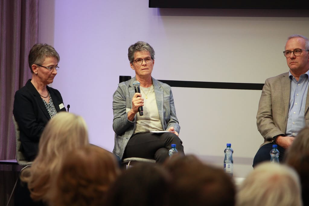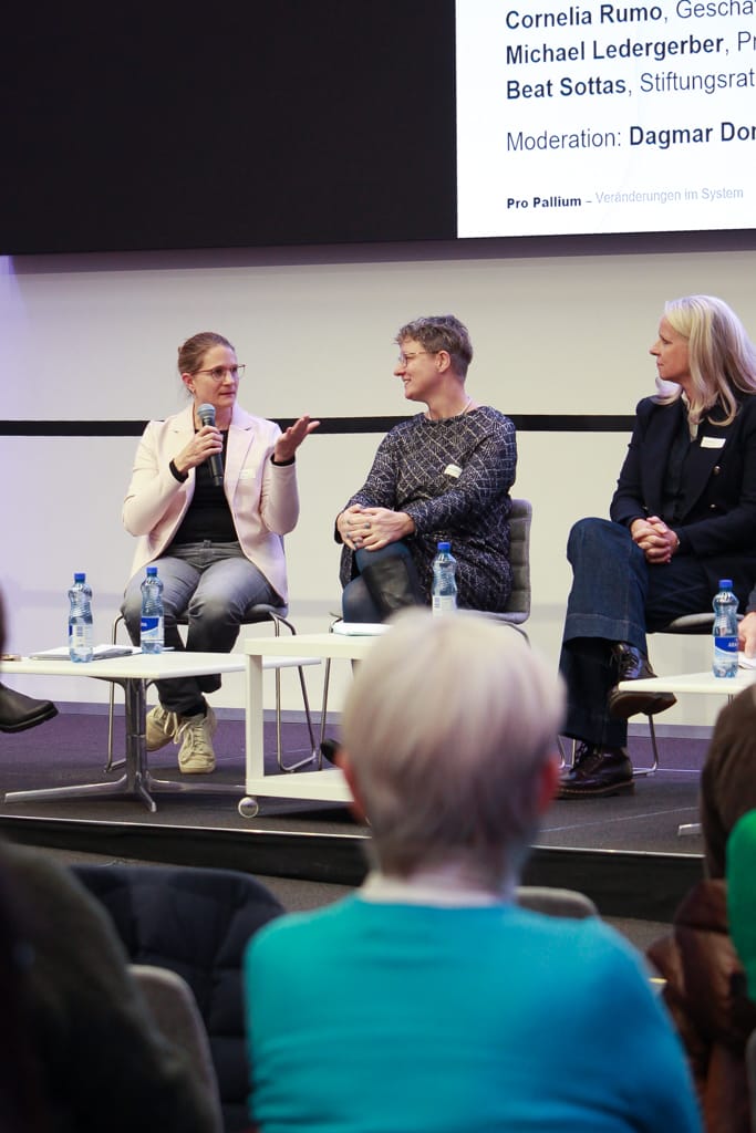 «Wenn ich nur genug Unterstützung und Begleitung erhalte, würde vieles erträglicher.» Mit diesem Zitat der Pro Pallium-Gründerin Christiane von May aus den 1990ern begrüsst Ulrike Bohni die Teilnehmenden der Jubiläums-Veranstaltung in der Aula der Fachhochschule Nordwestschweiz in Olten. Die Regionalleiterin Zürich moderiert durch die vierstündige Veranstaltung mit zwei Inputreferaten und zwei grossen Rundtischgesprächen. Über 130 Interessierte kommen, einige schalten sich Online dazu.