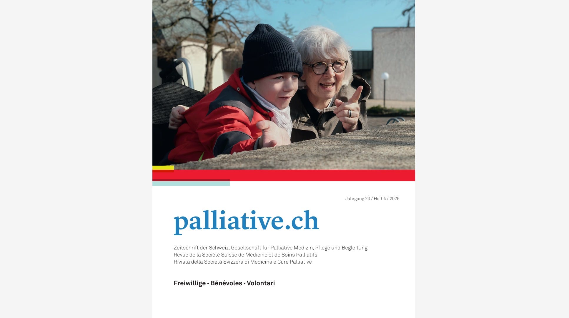 weiterlesen: palliative.ch: Geschulte Freiwillige in der häuslichen VersorgungUnsere Freiwilligen schenken Familien mit schwerstkranken Kindern Zeit, Entlastung und Nähe. Eine von ihnen berichtet, wie sie seit drei Jahren Familien begleitet – von gemeinsamen Spielstunden bis hin zu wertvollen Momenten mit ihren eigenen Enkelkindern. Ihr Engagement zeigt, wie bereichernd Begegnungen für beide Seiten sein können.